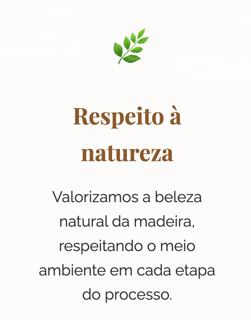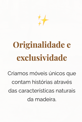 Criar móveis e objetos exclusivos que valorizem a beleza natural da madeira, respeitando o meio ambiente e promovendo o trabalho artesanal